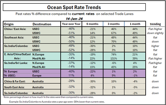 Spot rates trend: Firmer than the deepest late-Q4 points, but not supported by strong demand.